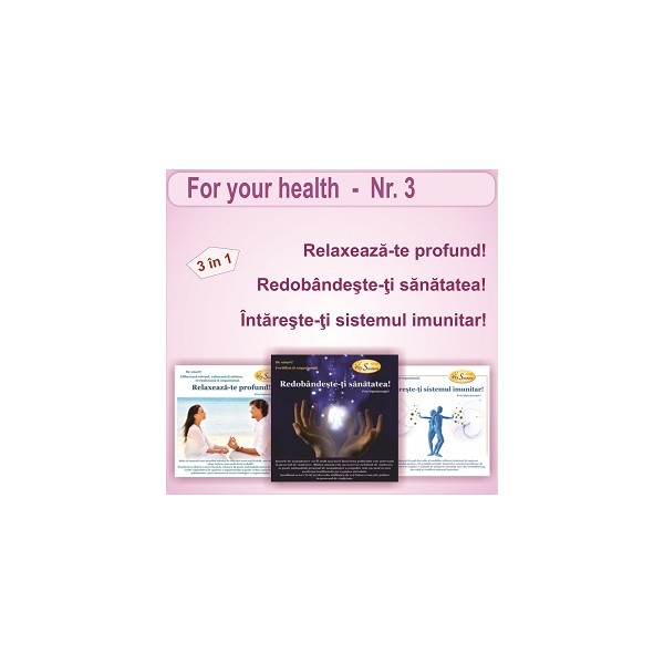 ”For your health – Nr. 3” - este o colecţie de şedinţe de hipnoterapie – în format mp3 - utile oricărei persoane interesate de starea sa de sănătate, care urmează un tratament medical și dorește să contribuie, prin implicarea resurselor proprii, la vindecarea sa mai rapidă sau la ameliorarea accelerată a simptomelor problemelor de sănătate.
